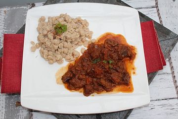 Rezept Von Alfons Schuhbeck Rindergulasch Mit Topfenspatzle 1 Kg Rindergulasch Rezept