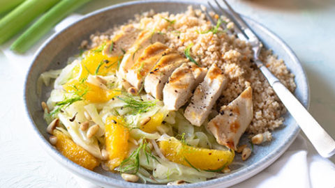 Fenchel Orangen Salat Mit Maishahnchen Couscous Shelikes Couscous Salat Rezept Orangensaft shelikes.de
