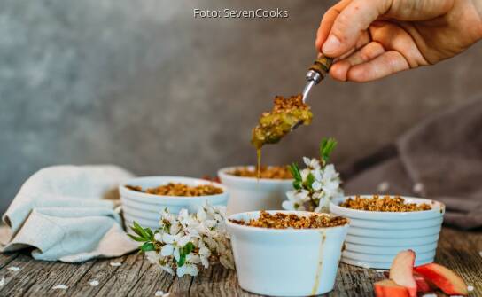 Rhabarber Crumble Vegan Mit Haferflocken Sevencooks Crumble Rezept Vegan