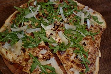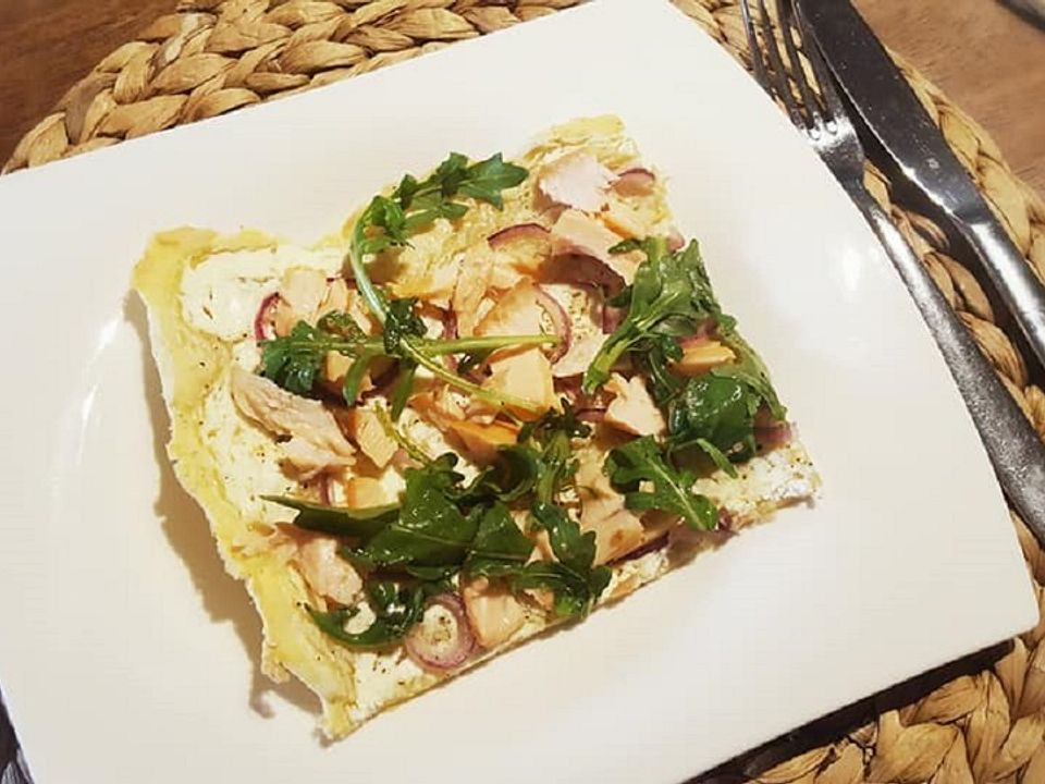 Selbstgemachter Flammkuchen Mit Stremellachs Und Rucola Von Flammkuchen Rezept Vegetarisch Chefkoch