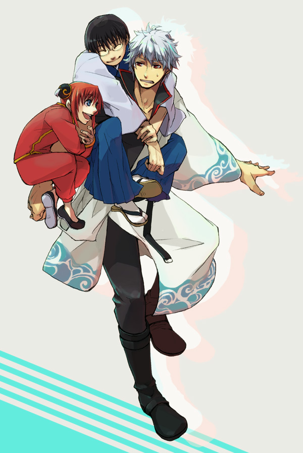 Kagura Sakata Gintoki Shimura Shinpachi And Sadaharu Gintama Drawn By Maruki Punchiki Danbooru Gintoki X Kagura X Shinpachi