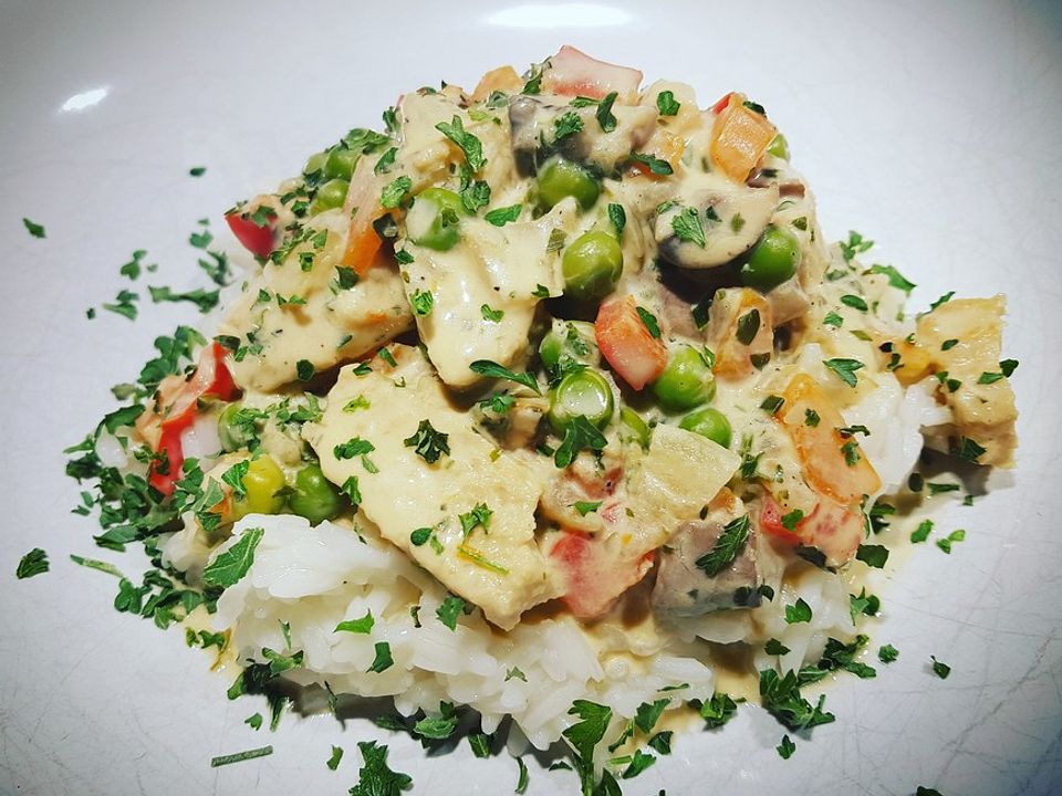 Veganes Huhnerfrikassee Mit Reis Von Sweetmalaria Chefkoch Ja Huehnerfrikassee