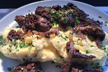 Geschnetzelte Zwiebelleber Mit Kartoffelpuree Von Hspirk Chefkoch Kartoffelpueree Rezepte Chefkoch