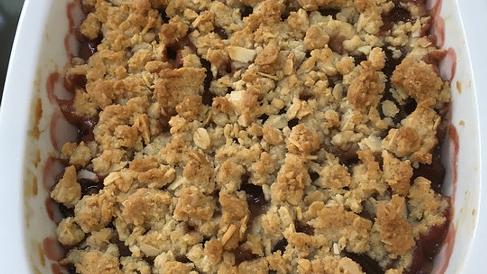 Kirsch Crumble Mit Haferflocken Und Mandeln Ganz Einfach Kirsch Crumble Rezept Chefkoch