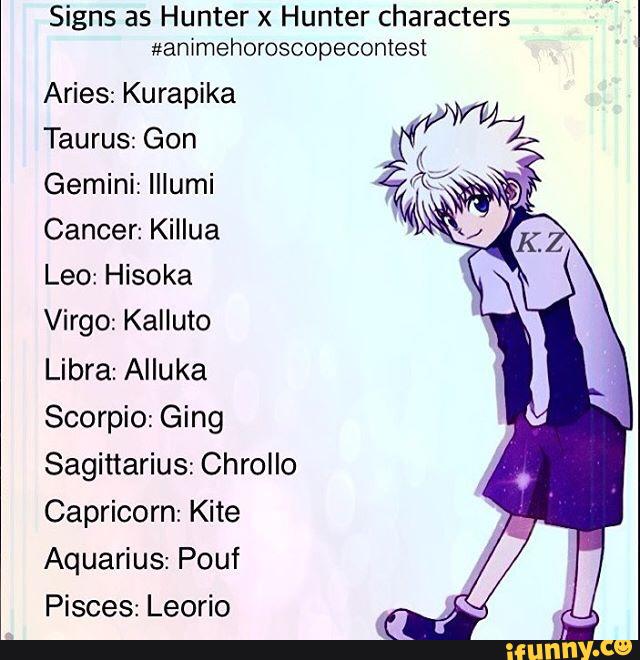 Signs As Hunter X Hunter Characters Ammehoroscopecontest Aries Kite X Ging ifunny.co