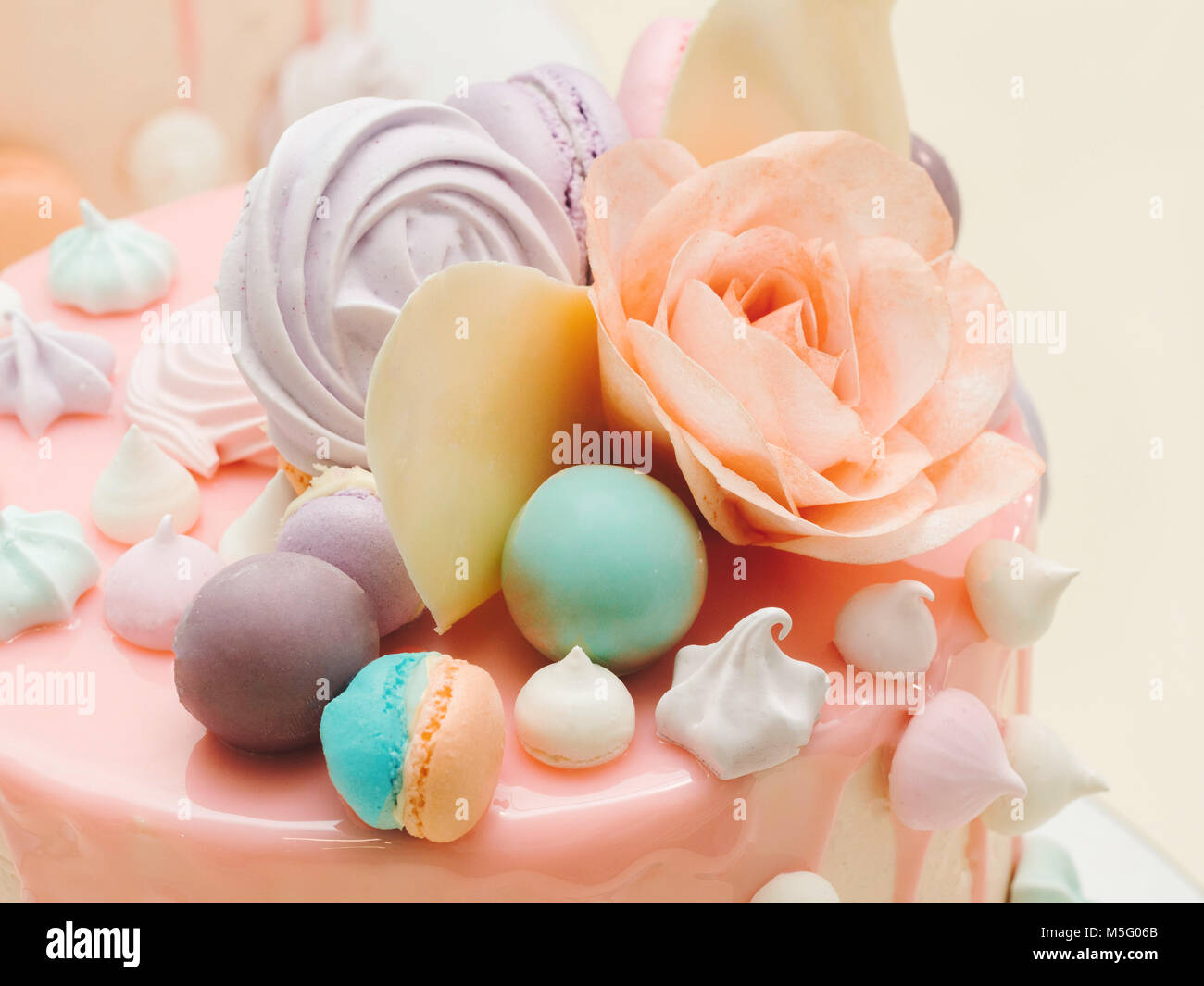 Mousse Frances Moderno Rosa Pastel Con Glaseado Espejo Decorado Modernos Pasteles Con Macarons