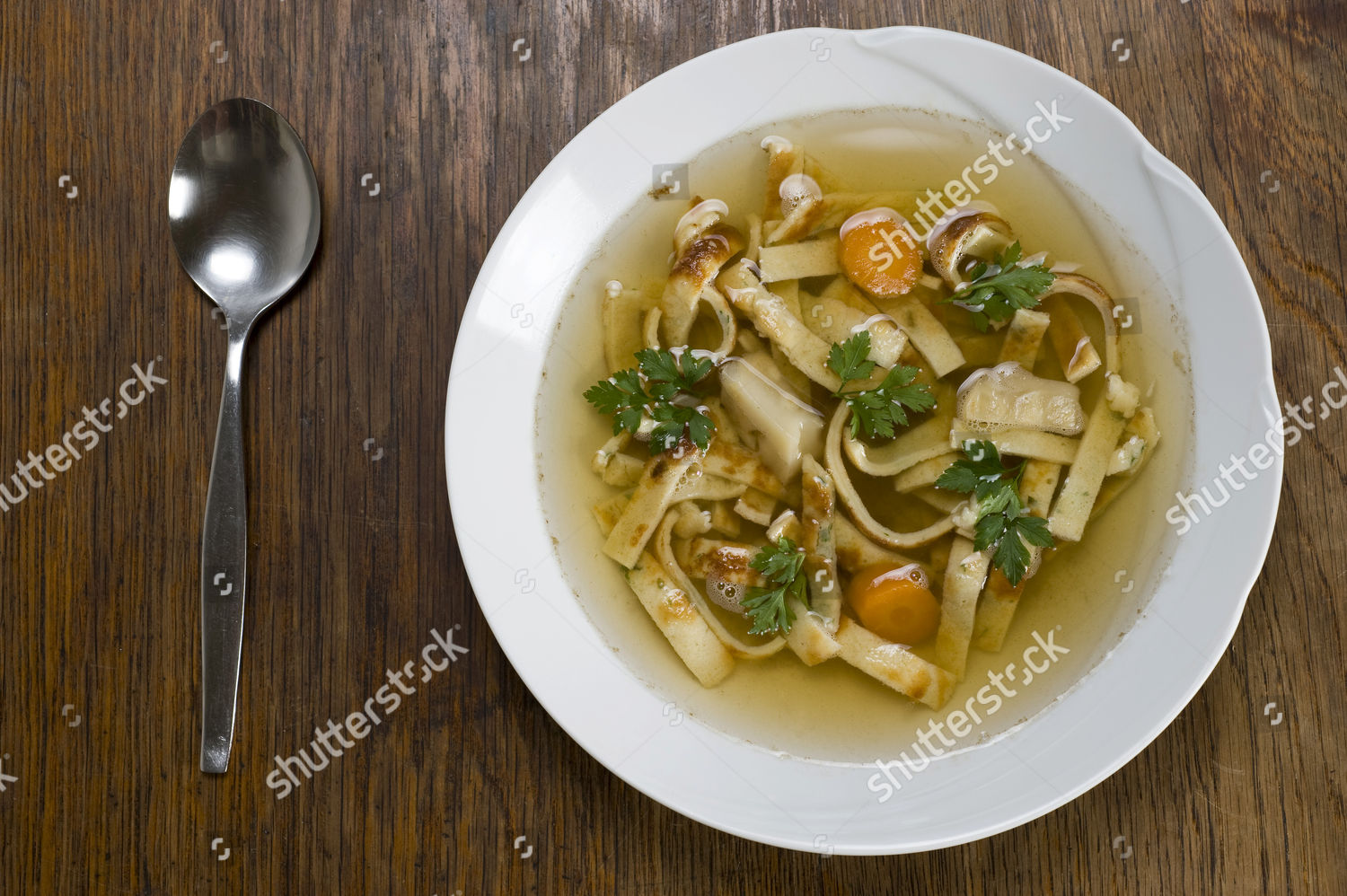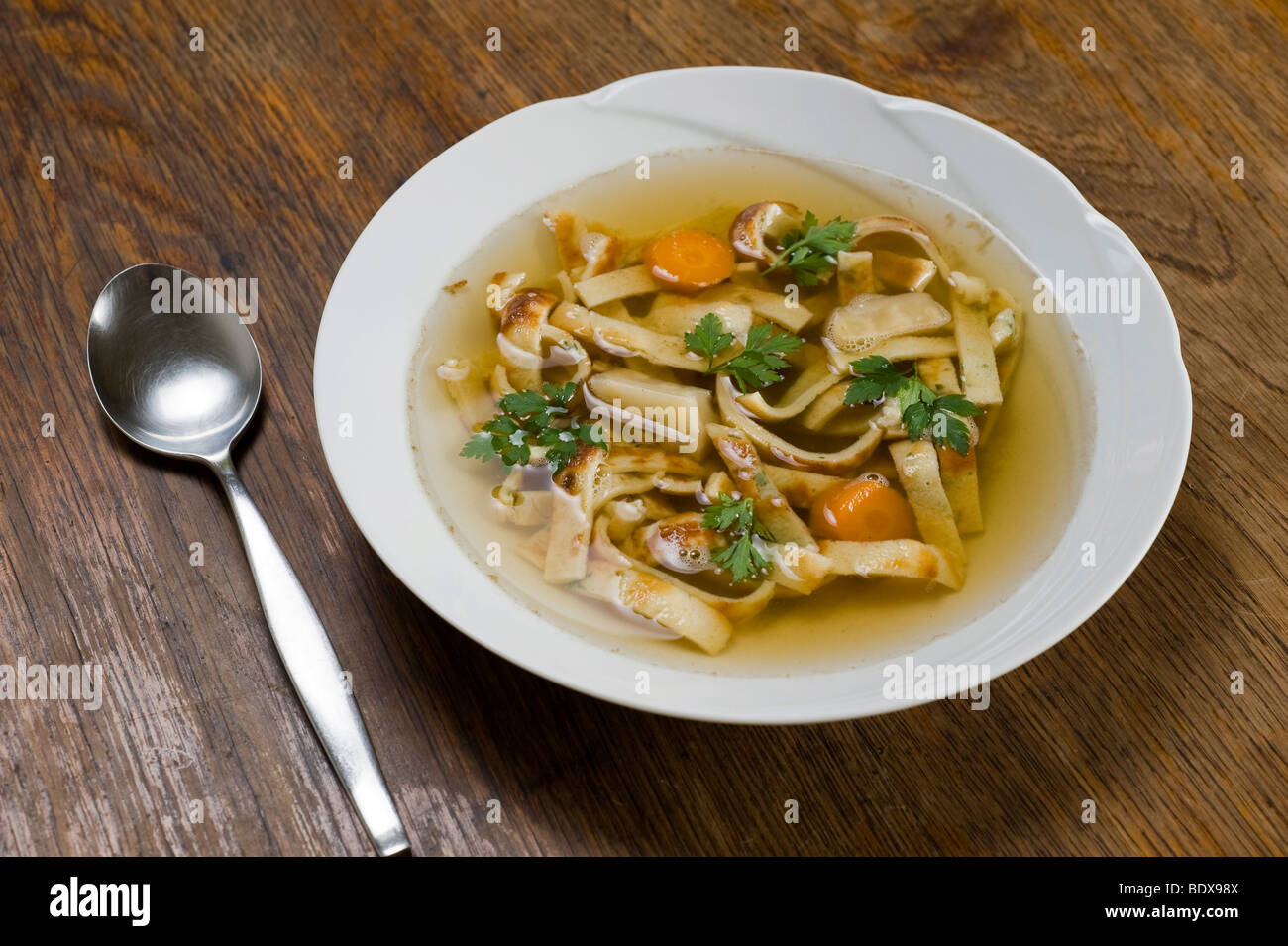 Pfannkuchensuppe Pancake Soup Stock Photo Alamy Pfannkuchensuppe