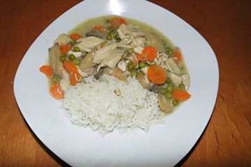 Huhnerfrikassee Mit Pilzen Und Erbsen Rezept Daskochrezept De Rezept Huehnerfrikassee Mit Erbsen Und Moehren