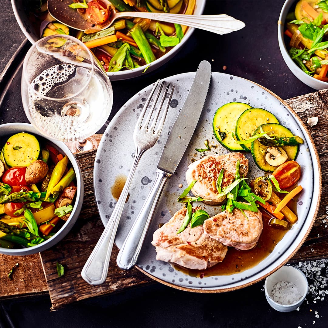 Medaillons Mit Spargelgemuse Rezept Edeka Rezept Schweinefilet Zucchini Paprika