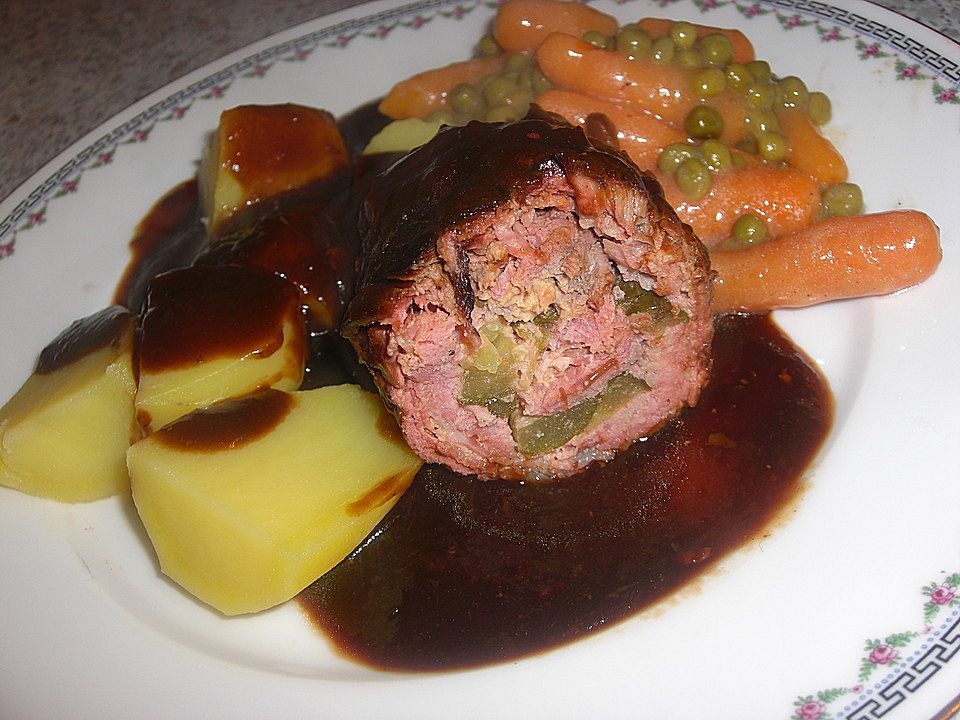 Rinderrouladen Mit Senf Bacon Zwiebeln Und Essiggurken Von Rinderrouladen Rezept Backofen