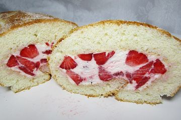 Evas Raffinierte Biskuitroulade Mit Erdbeeren Von Evamaria70 Chefkoch Rouladen Rezept Kuchen
