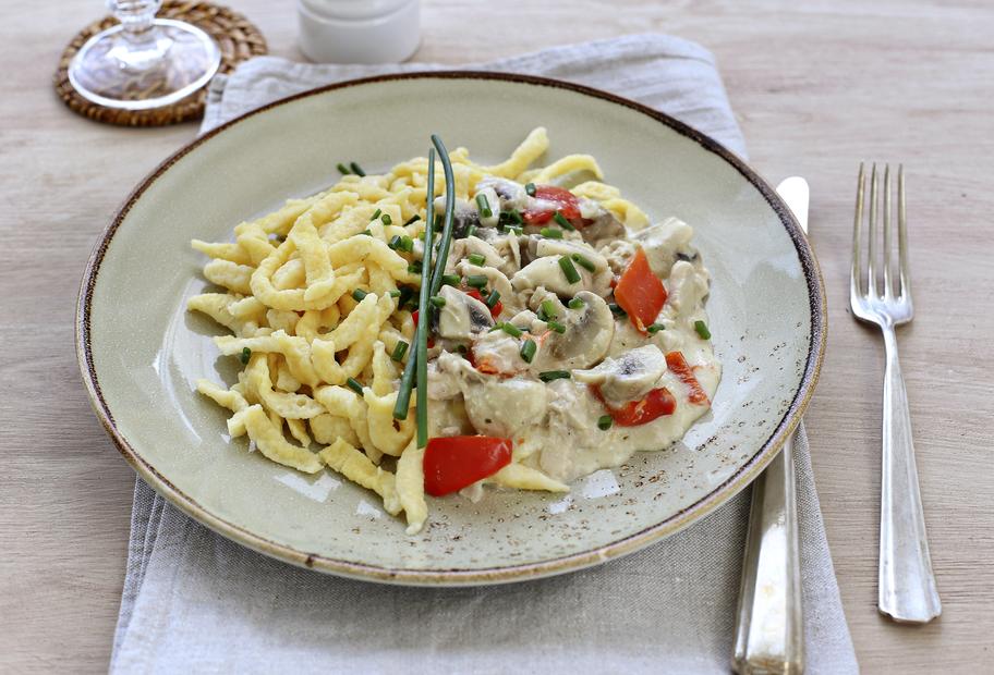Hahnchengeschnetzeltes Mit Spatzle Fur Den Thermomix Spaetzleteig Rezept Thermomix Tm5